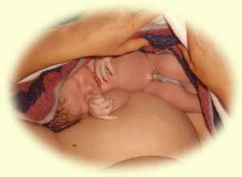 auf dem Bauch der Mutter erholen können. Körperkontakt und eine